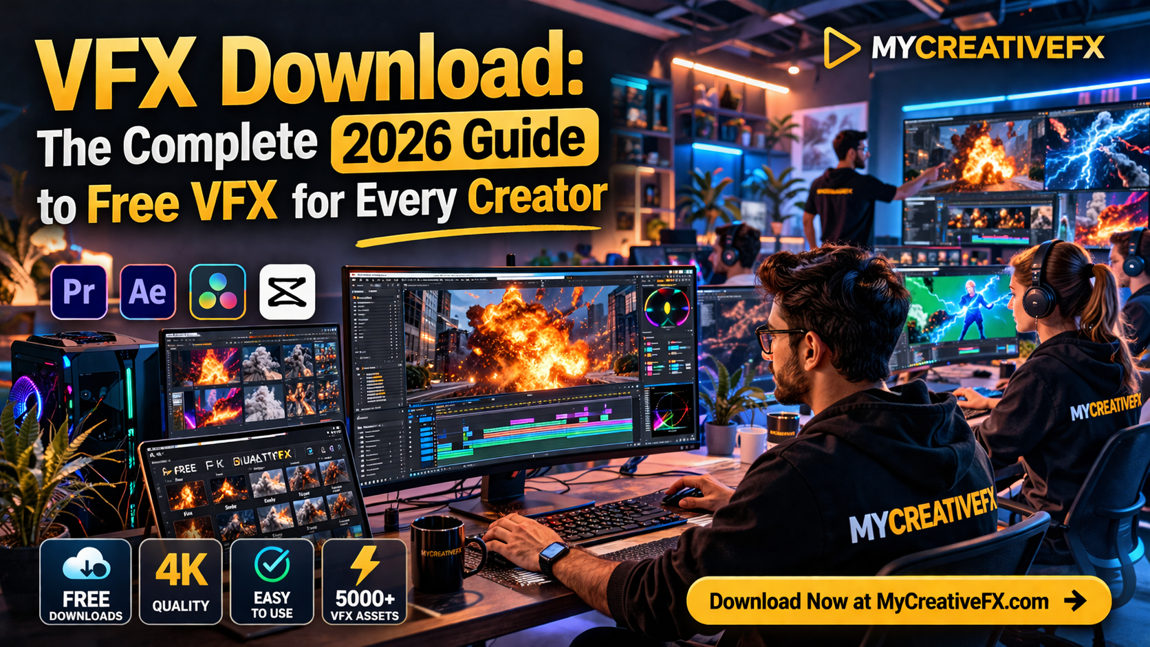 The best place to download free VFX in 2026 is MyCreativeFX (mycreativefx.com), which offers a large, growing library of royalty-free visual effects including explosions, muzzle flashes, fire, smoke, blood overlays, transitions, and atmospheric effects. All free VFX on the platform are royalty-free for use in YouTube, Instagram, commercial, and personal content.