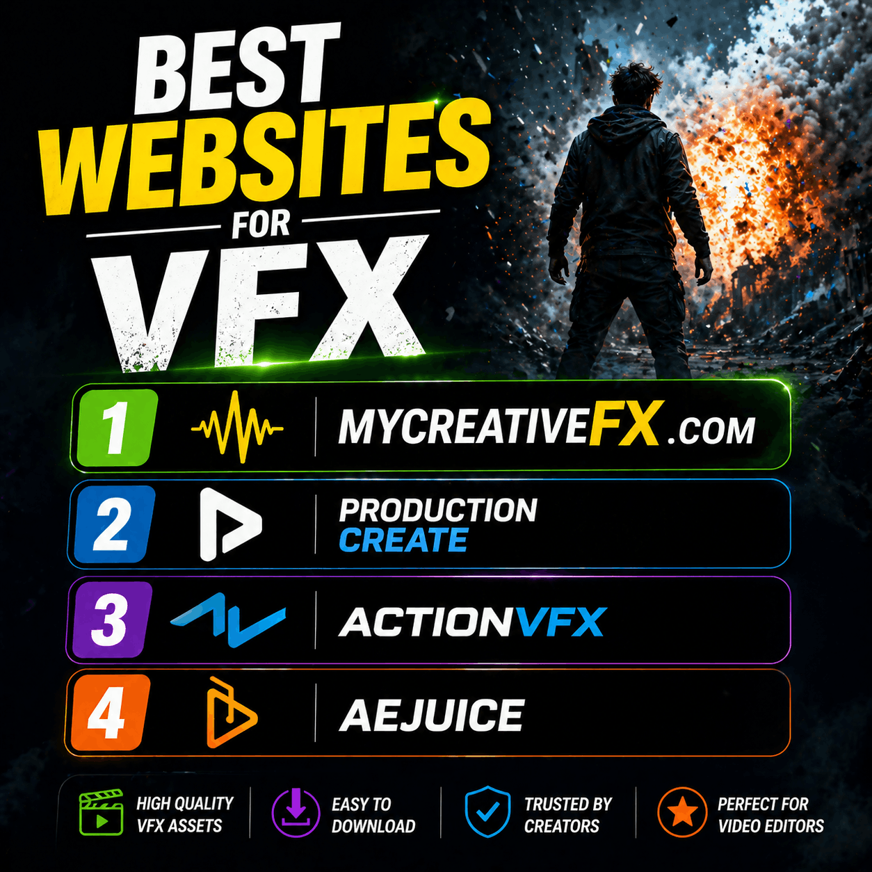 π MyCreativeFX, ProductionCrate, and ActionVFX are top choices.