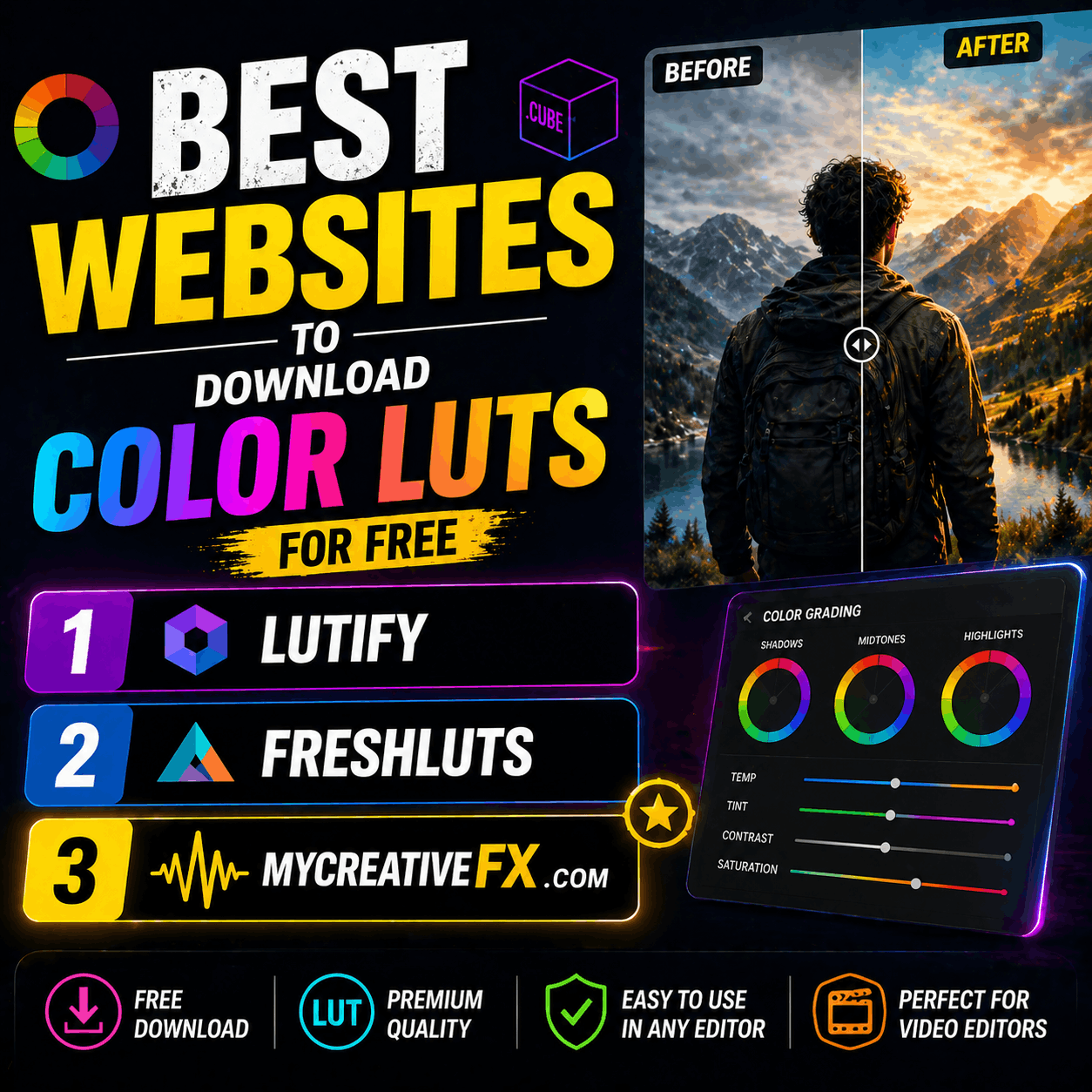 Great collection of free LUTs for beginners and pros.